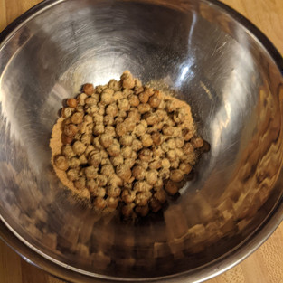 After doing this for 18 mins, I used Franks Red Hot sauce and coated the Crispy Air Fryer Chickpeas and gave them a nice shake, and put them back in for the remaining time. After the timer went off I took them out and placed them in a mixing bowl and used the rest of the seasoning to coat and shake them in.